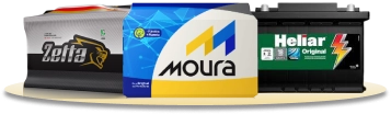 Trabalhamos com as melhores marcas de baterias automotivas do mercado: Moura, Heliar, Zetta, Maxpower, Real, Pioneiro, dentre outras.